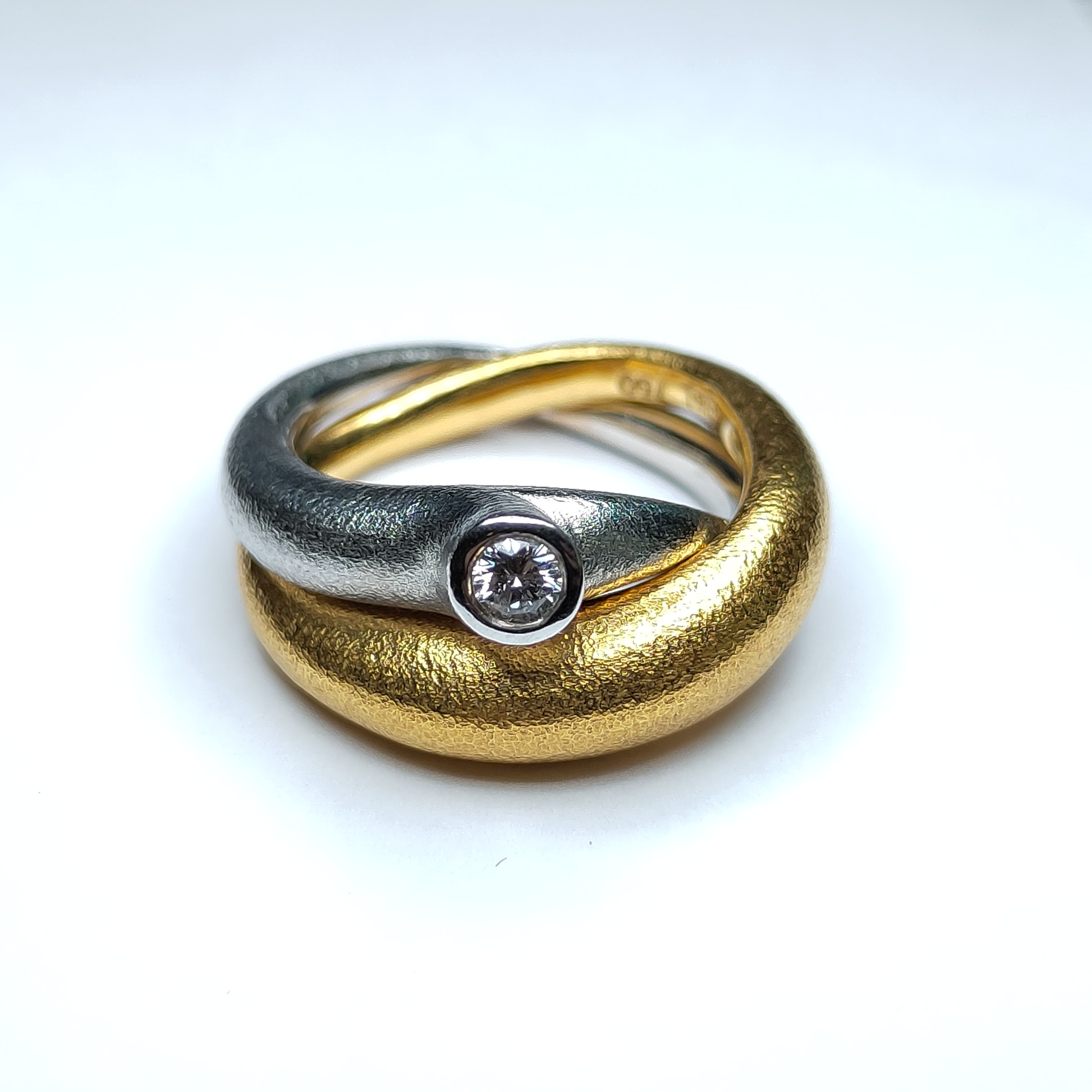 Fidelity Ring , Ring, von der Kollektion Love Bands, aus mattem Gelb- und Weissgold, AU750, mit Diamant farblos zu total 0.12 ct.Eigenschaften: