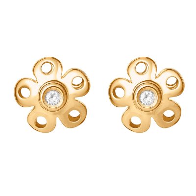 Earring Lace mini, Ohrstecker, von der Kollektion Lace, aus poliertem Gelbgold, GG750, mit Diamanten farblos zu total 0.02 ct.Eigenschaften: