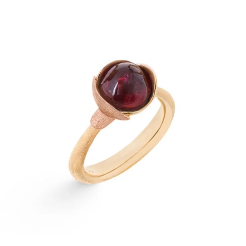 Lotus Ring 1 Turmanlin, Ring, von der Kollektion Lotus, aus mattem Gelb- und Roségold, AU750, mit Steinbesatz aus Turmalin rot.Eigenschaften: