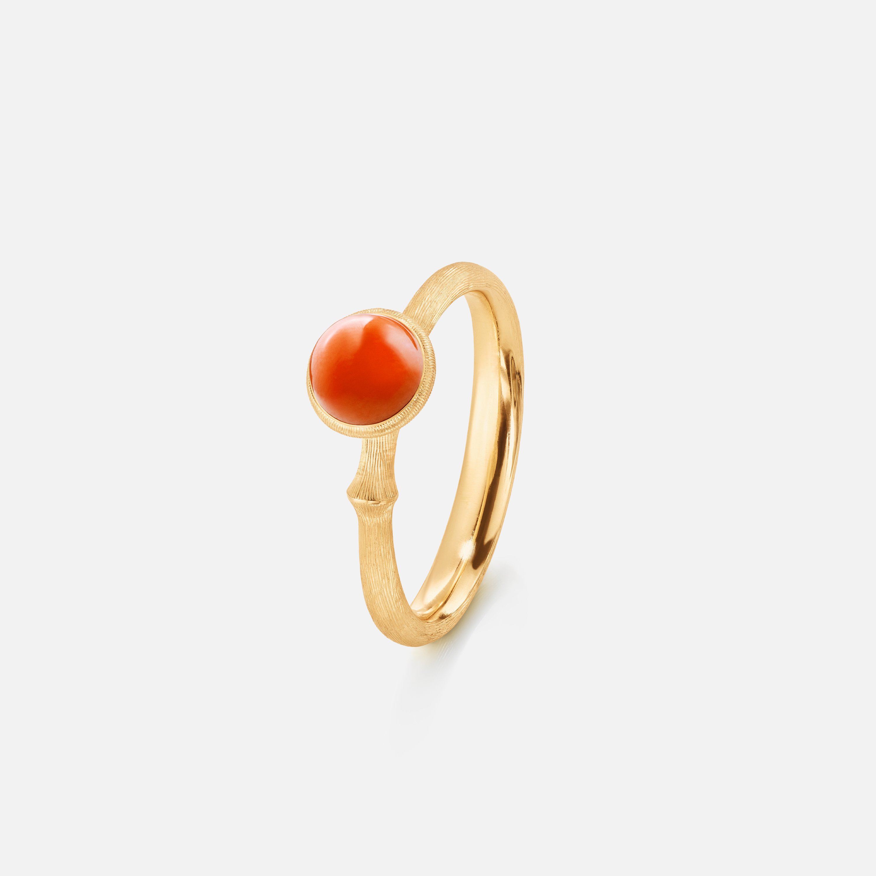 Lotus Ring 0 Coral, Ring, von der Kollektion Lotus, aus mattem Gelbgold, GG750, mit Steinbesatz aus Koralle rot.Eigenschaften: