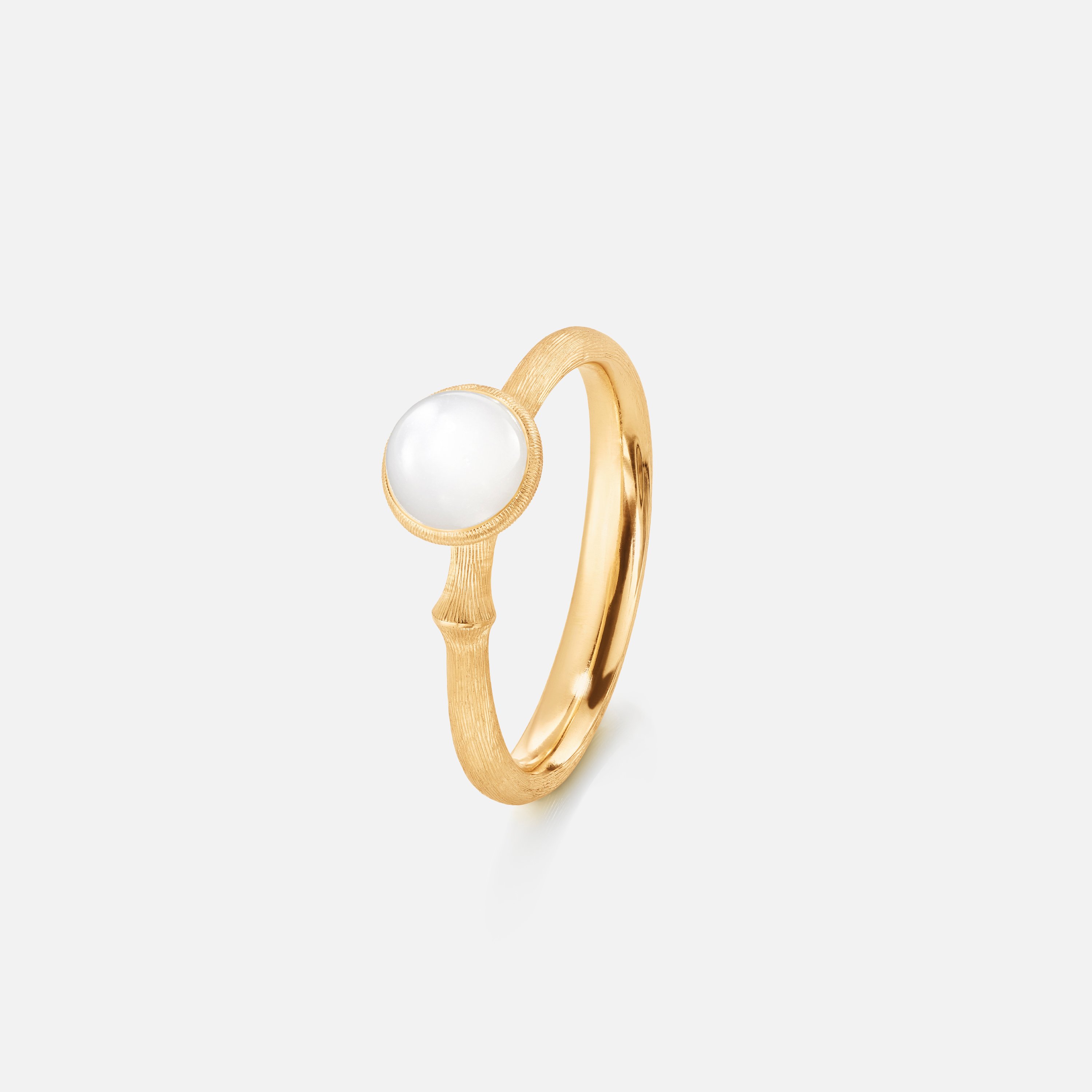 Lotus Ring 0 Aquamarine, Ring, von der Kollektion Lotus, aus mattem Gelbgold, GG750, mit Steinbesatz aus Mondstein weiss.Eigenschaften: