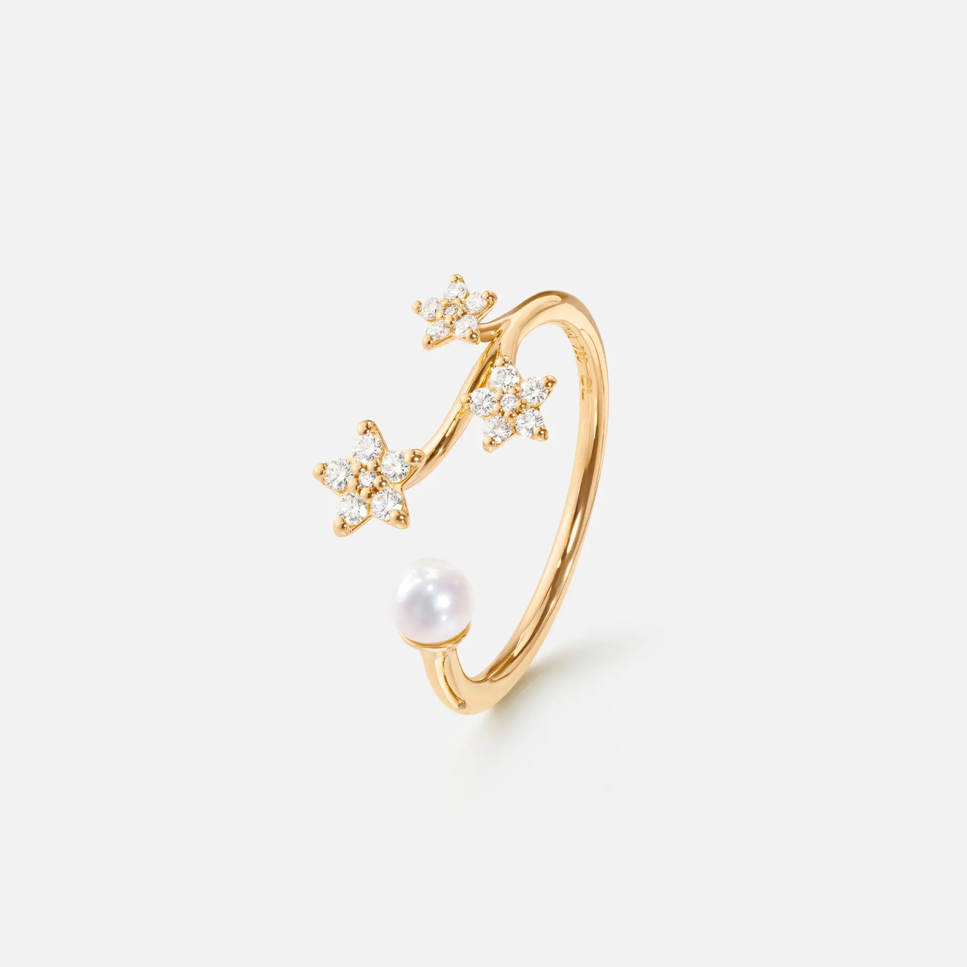 Shooting Stars Ring small, Ring, von der Kollektion Shooting Stars, aus poliertem Gelbgold, GG750, mit Diamanten farblos zu total 0.14 ct, mit Steinbesatz aus Zuchtperle weiss, Zuchtperle weiss.Eigenschaften: