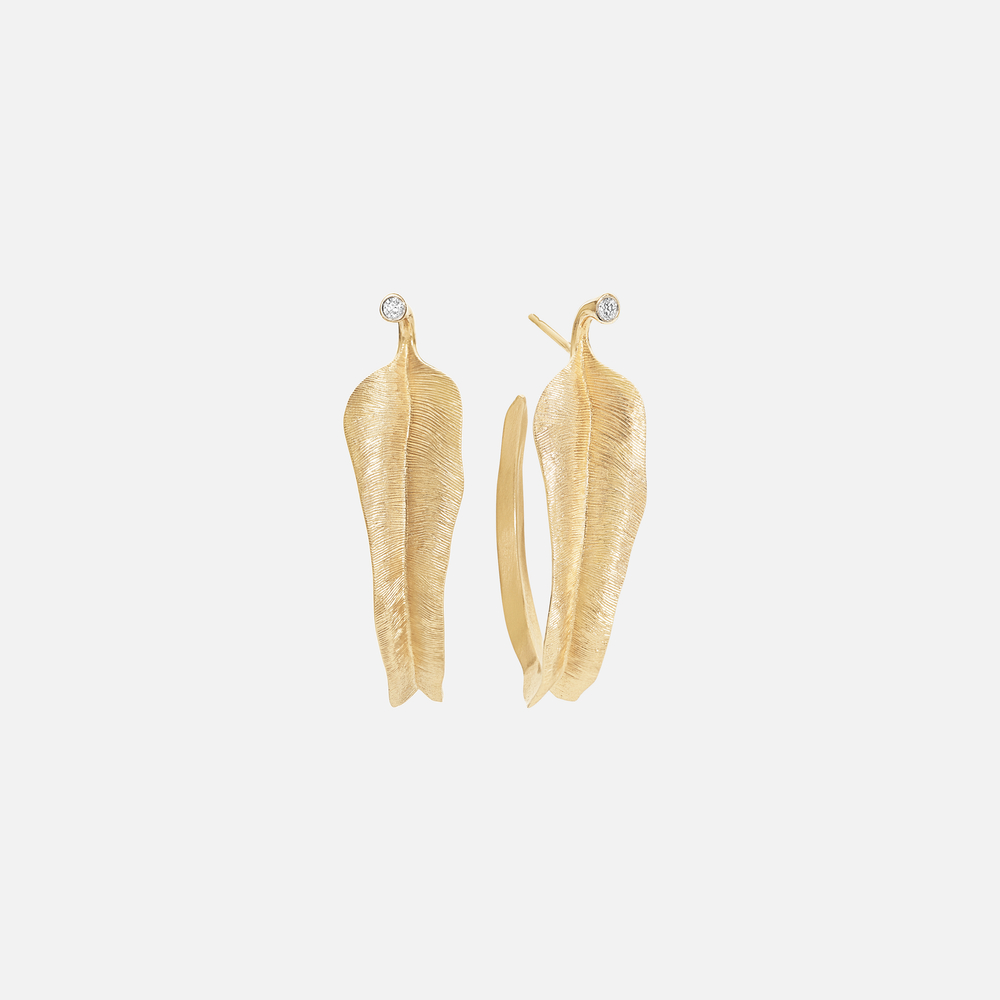 Leaves Earloops small, Ohrstecker, von der Kollektion Leaves, aus mattem Gelbgold, GG750, mit Diamanten farblos zu total 0.02 ct, Länge 25.5 cm.Eigenschaften: