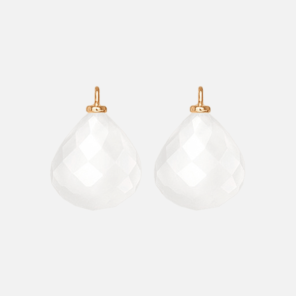 Earring Pendant Drop Milky Quartz, Ohrring-Anhänger, von der Kollektion Lotus, aus em Gelbgold, GG750, mit Steinbesatz aus Milchquarz weiss, Länge 0.16 cm.Eigenschaften: