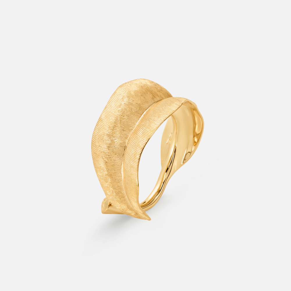 Leaves ring medium, Ring, von der Kollektion Leaves, aus mattem Gelbgold, GG750, Breite 2.35 cm.