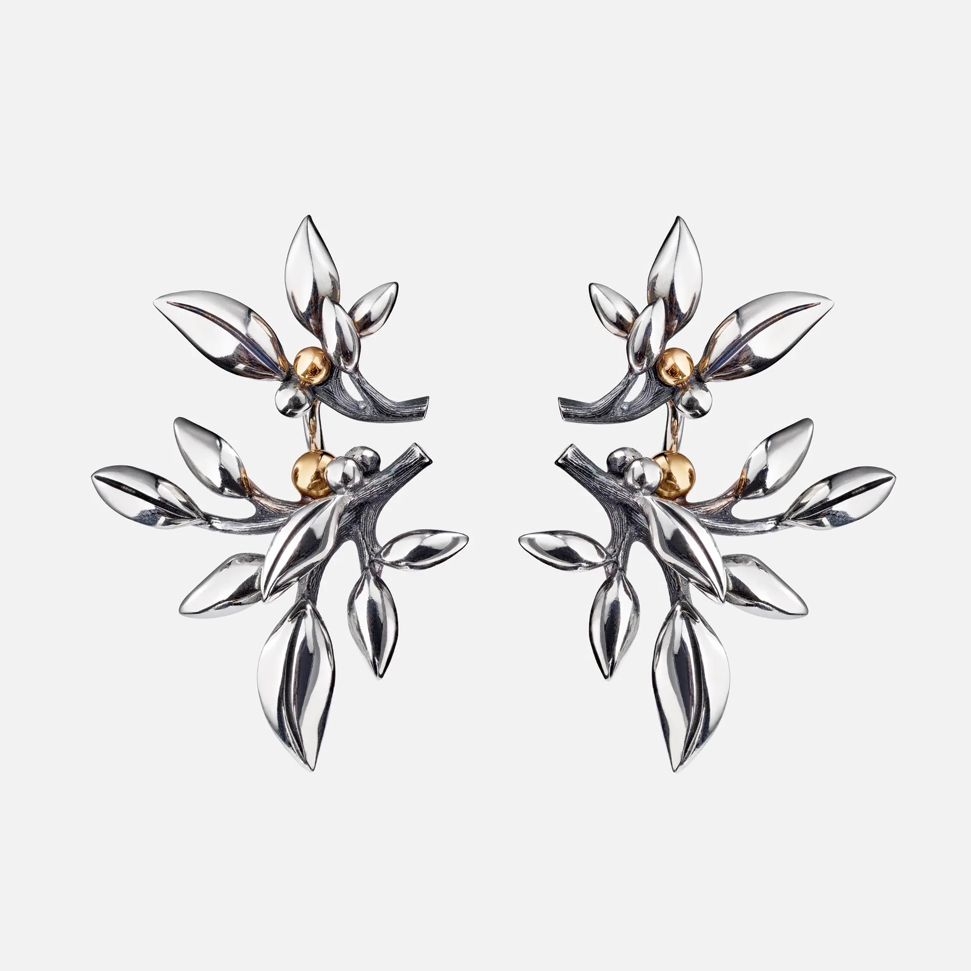 Forest Earrings and Pendants, Ohrstecker, von der Kollektion Forest, aus matt und poliertem Silber, AG925, mit Steinbesatz aus Gelbgold .Eigenschaften: