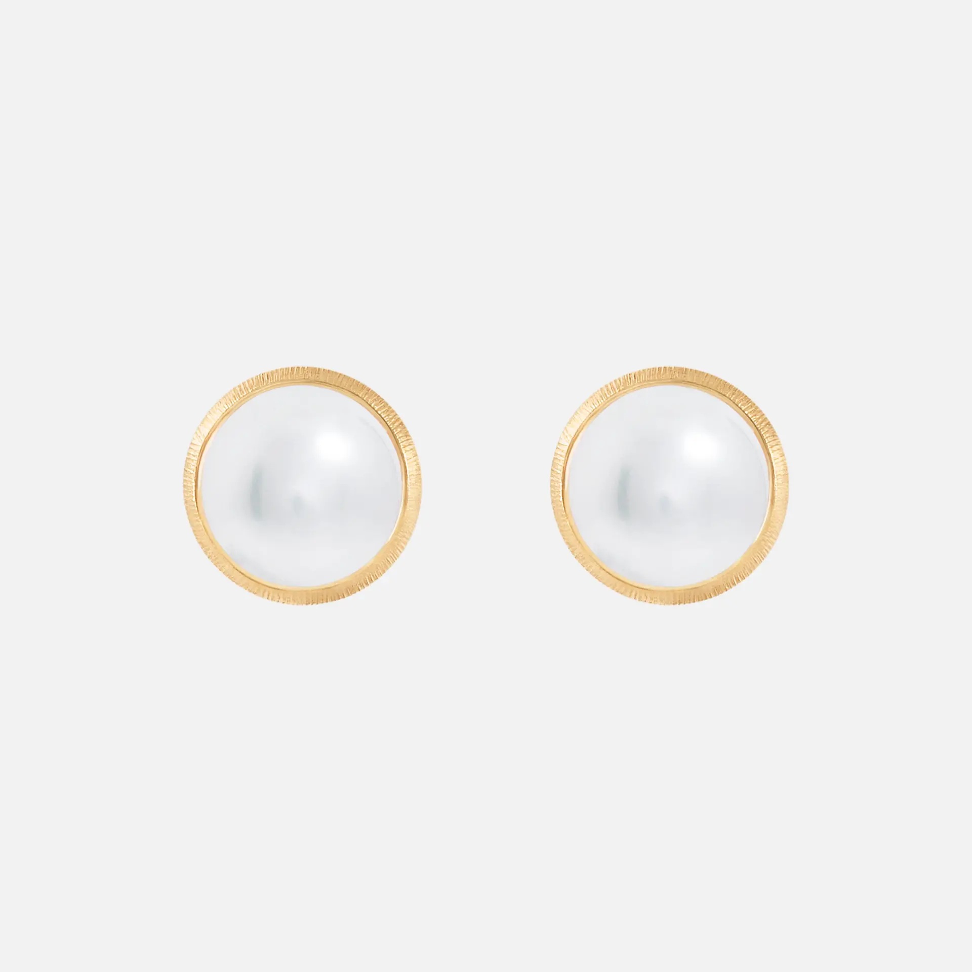 Lotus Stud pearls, Ohrstecker, von der Kollektion Lotus, aus mattem Gelbgold, GG750, mit Steinbesatz aus Zuchtperlen weiss, Breite 0.7 cm.Eigenschaften: