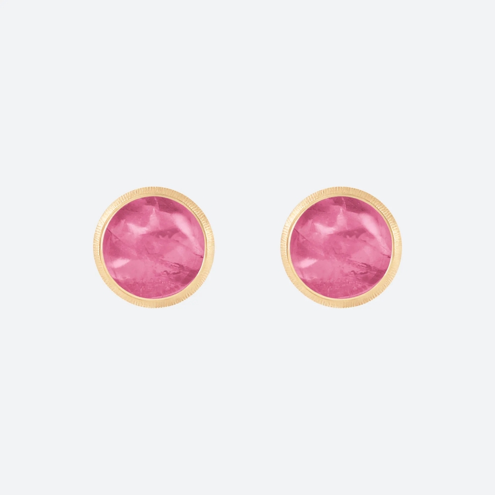 Lotus Stud turmaline, Ohrstecker, von der Kollektion Lotus, aus mattem Gelbgold, GG750, mit Steinbesatz aus Turmalin rosa, Breite 0.7 cm.Eigenschaften: