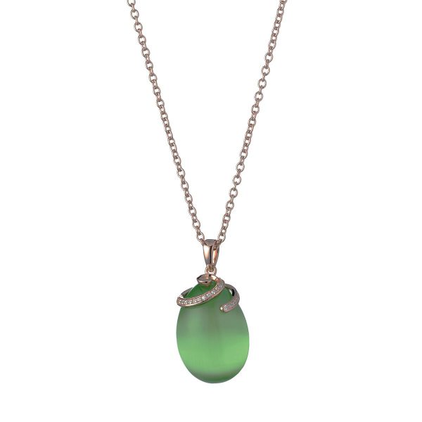 Olga 1201 Halskette aus rosafarbenem Silber und grünem Kristall