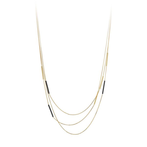 Treasure Mountain 3-reihige Halskette aus vergoldetem Silber und schwarzer Emaille