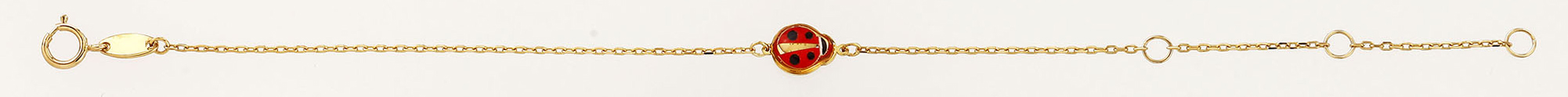 Armband Anker geschliffen Gelbgold 750 mit 1 Marienkäfer in Rot, Harz, 16cm