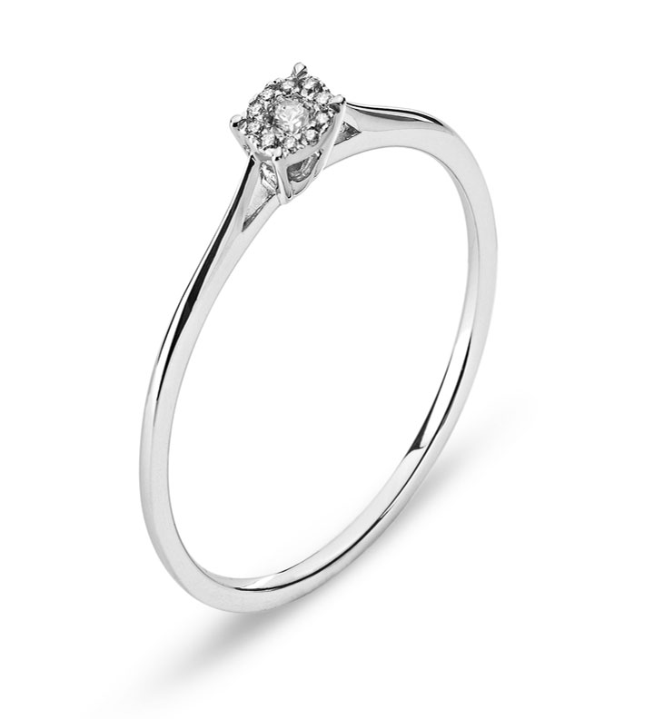 Ring Weissgold 750 mit 10 Brillanten H SI 0.02ct. und 1 Brillant H SI 0.05ct.