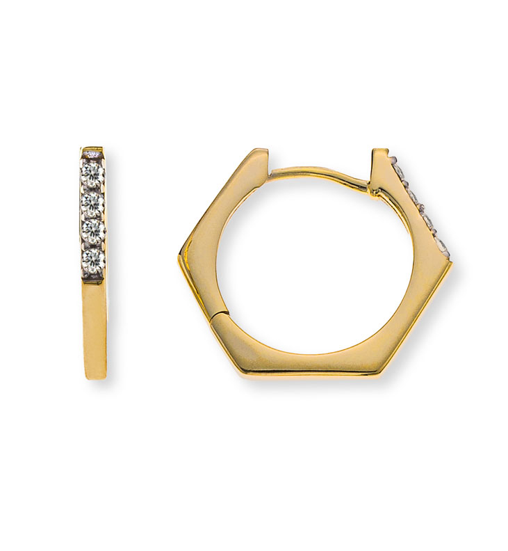 Kreolen Gelbgold 375 poliert, eckige Form mit total 8 weisse Zirkonia D:15mm