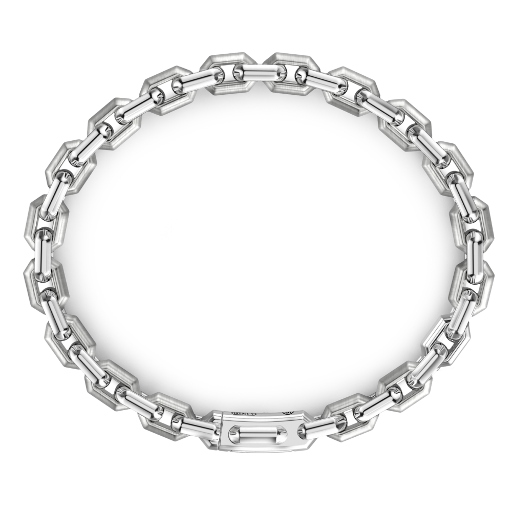 Gliederarmband aus 925er Silber. Das Armband besteht aus ineinandergreifenden geometrischen Gliedern in satinierter und glänzender Ausführung, die ihm seinen einzigartigen Schimmer verleihen. Ein Armband im ausgeklügelten und raffinierten Design mit wertvollen Details. Der Schnappverschluss trägt das Logo. Das Schmuckstück ist Teil der Cosmopolitan Luxury-Kollektion, dem Premium-Segment unserer allgemeinen Cosmopolitan-Kollektion, die vom Design internationaler Metropolen inspiriert ist. Das Armband wurde in Italien komplett von Hand gefertigt und wiegt 48,60 g.Eigenschaften: