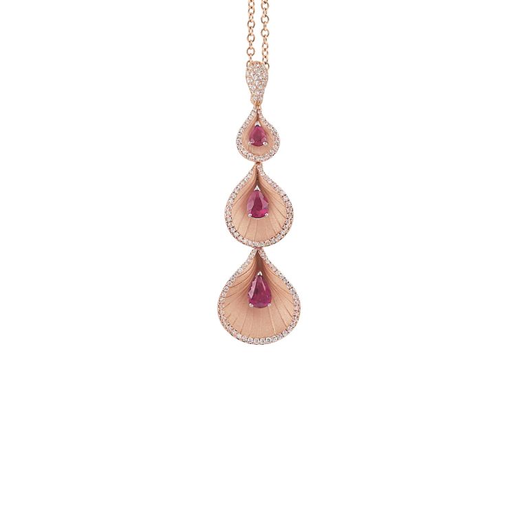 Premiere Color Serie Halskette, 18Kt Pink Champagne Gold mit Diamanten und RubinenProperties: