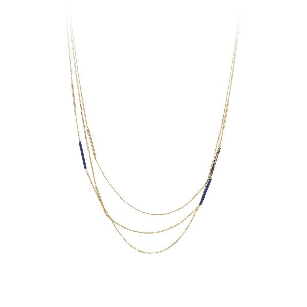 Treasure Mountain 3-reihige Halskette aus vergoldetem Silber und blauer Emaille