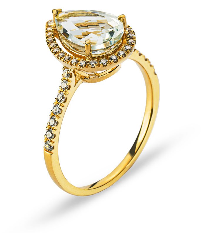 Ring Gelbgold 750 mit grünem Amethyst tropfen 1.74ct. und