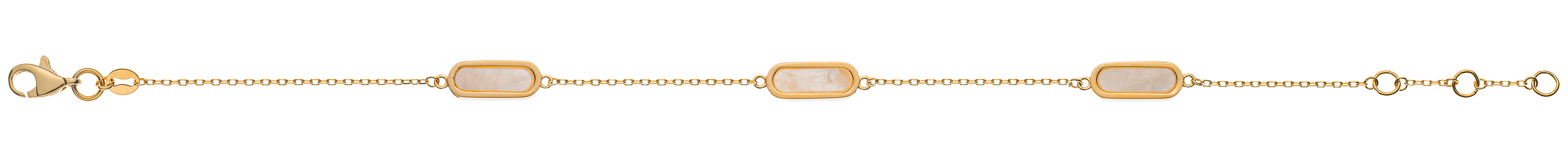 Bracelet Gelbgold 750, 19cm (17+18cm) mit 3 Perlrmutt Elementen 5x11mm