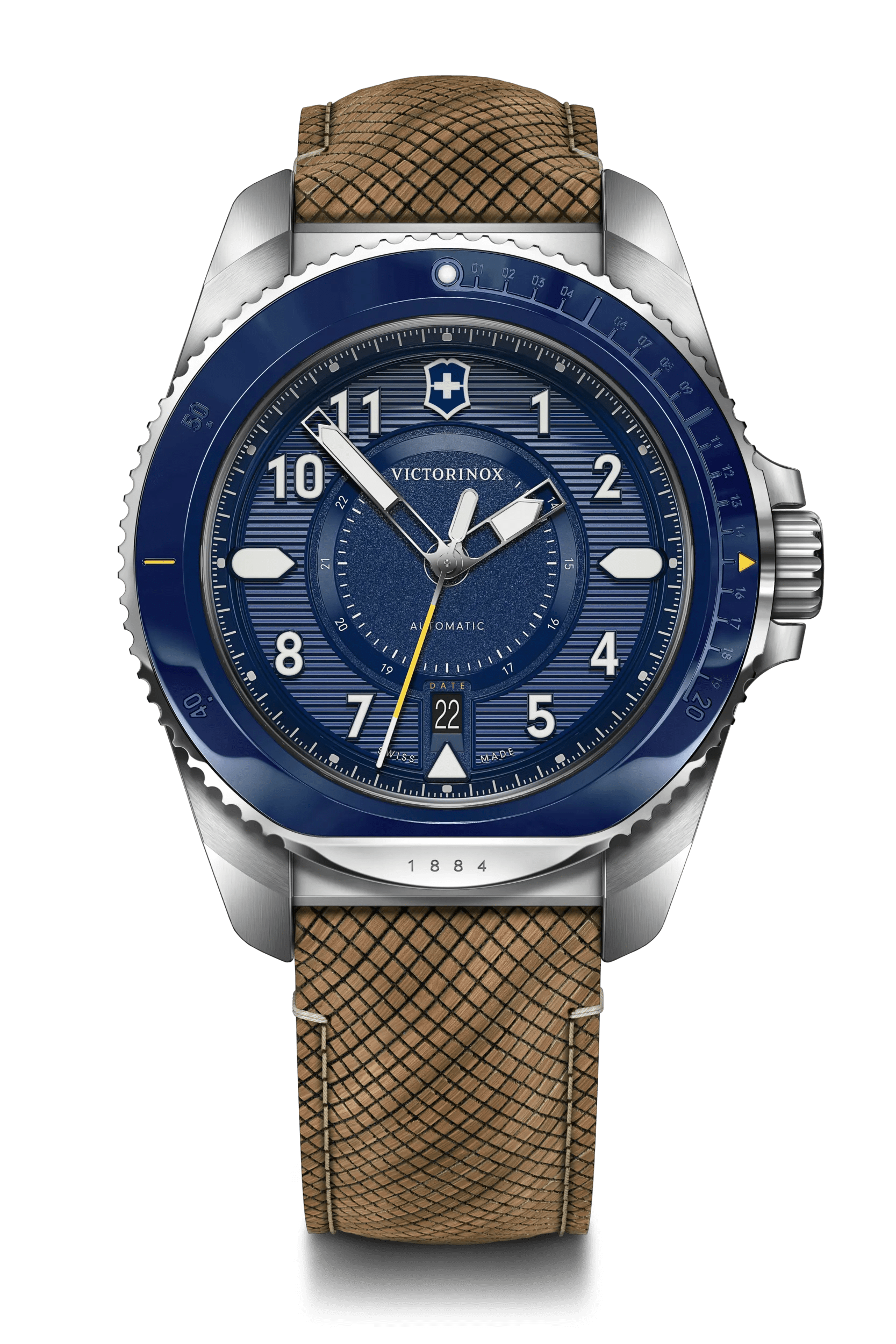 Dank cleverer Eigenschaften wie einer Keramiklünette, Designelementen in Form des Schweizer Taschenmessers und einem gravierten Materialcode ist sie ein einzigartiger Begleiter fürs Handgelenk.