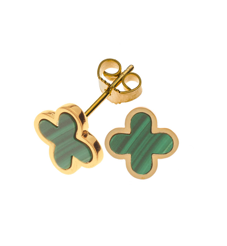 Ohrstecker Gelbgold 750 mit 2 Malachitkreuzen 12mm