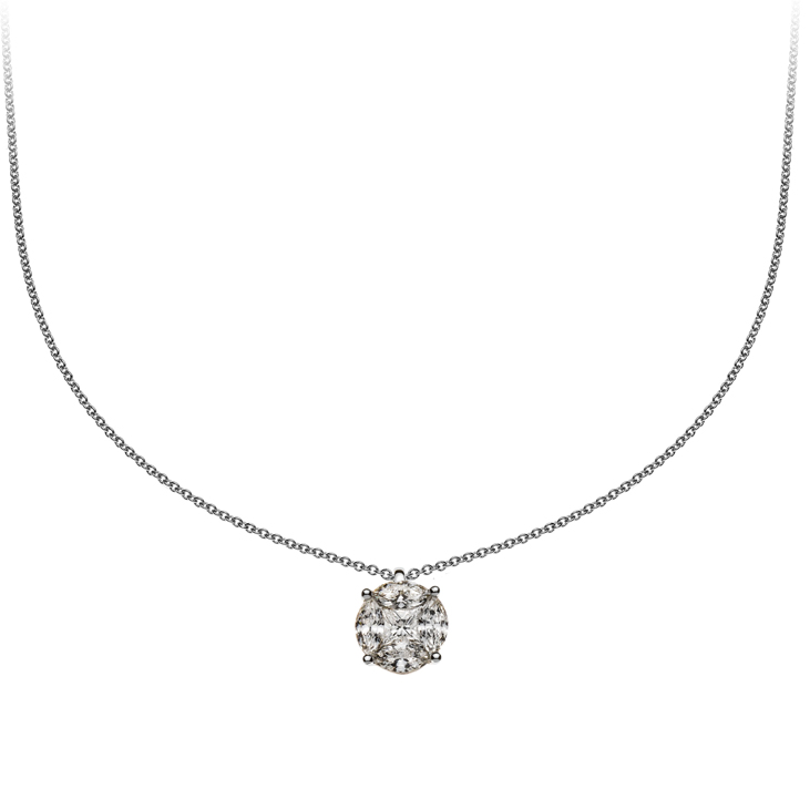 Collier Weissgold 750, 45cm mit Brillanteinhänger, mit 4 Marquise Diamanten